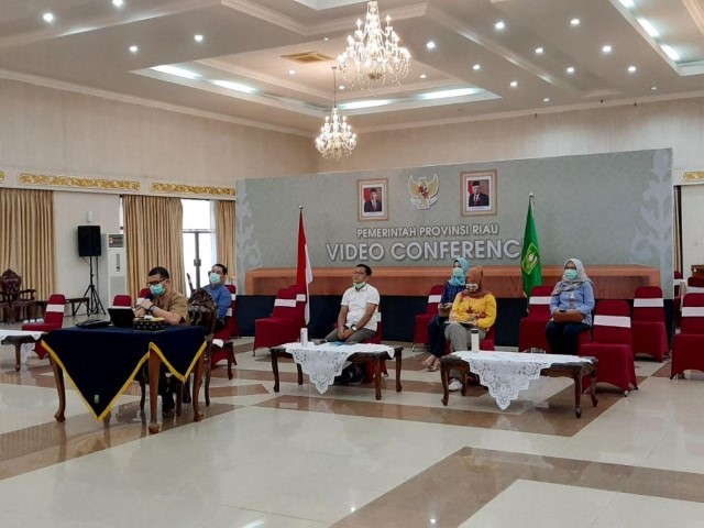 BUALBUAL.com - Juru Bicara (Jubir) Gugus Tugas Penanganan Covid-19 dr Indra Yovi menggelar Video Conference pembahasan peningkatan kasus Pasien Dalam Pengawasan (PDP) yang begitu cepat di Provinsi Riau di Gedung Daerah Balai Serindit, Sabtu (18/04/2020).