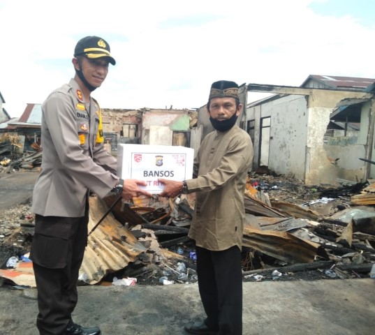 "Ibu-bapak yang saya hormati, kami datang kesini untuk bersilaturahmi dengan korban kebakaran dan sedikit memberikan paket sembako. Ini merupakan perintah bahwa polri harus peduli terhadap masyarakat dimana pun polri berada," ungkapnya.