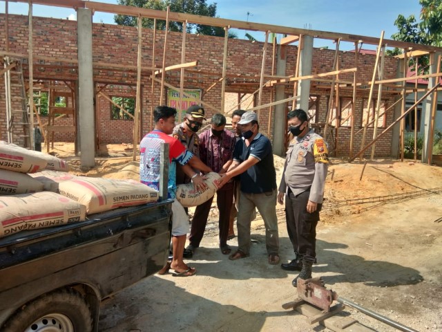 Kapolsek Tapung Kompol Sumarno Bantu 50 Sak Semen Untuk Pembangunan TPA Nurul Iman