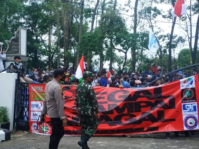 Dalam kesempatan itu Danrem 063/SGJ Kolonel Inf Elkines Villando Dewangga. K, didampingi Dandim 0619/Purwakarta Letkol Arm Krisrantau langsung masuk ke kerumunan massa untuk menyampaikan himbauan kepada seluruh peserta unjuk rasa untuk selalu mematuhi protokol kesehatan guna menjaga diri, keluarga, dan orang-orang sekitar, guna meminimalisir penyebaran Covid 19 di Kabupaten Purwakarta.