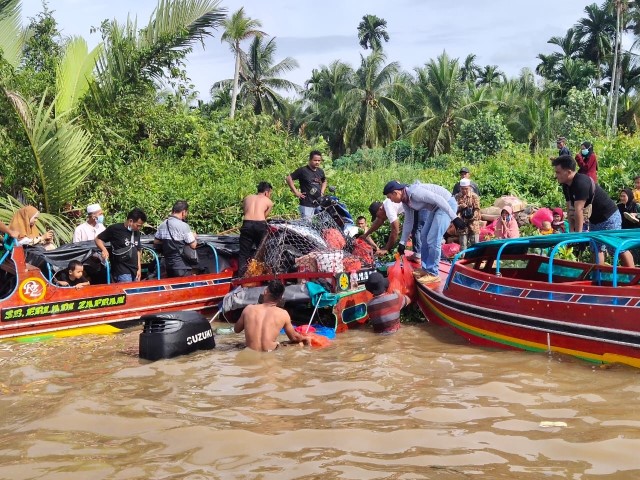 Speed Boat Tujuan Air Bagi Concong Tenggelam di Perairan Bantalan Tembilahan