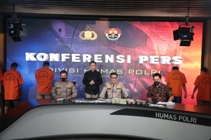 BUALBUAL.com - Ada pemandagan berbeda diacara konferensi pers pengungkapan kasus narkotika jaringan internasional yang digelar Divisi Humas Mabes Polri, Jumat (29/1/2021).