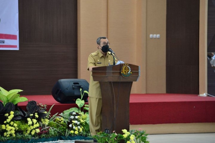 Gubernur Riau (Gubri) Syamsuar saat memberikan sambutan mengatakan bahwa kehadiran dari Setjan Wantannas beserta rombongan tentunya dapat memberikan semangat dalam rangka menyelesaikan persioalan yang ada di Provinsi Riau.