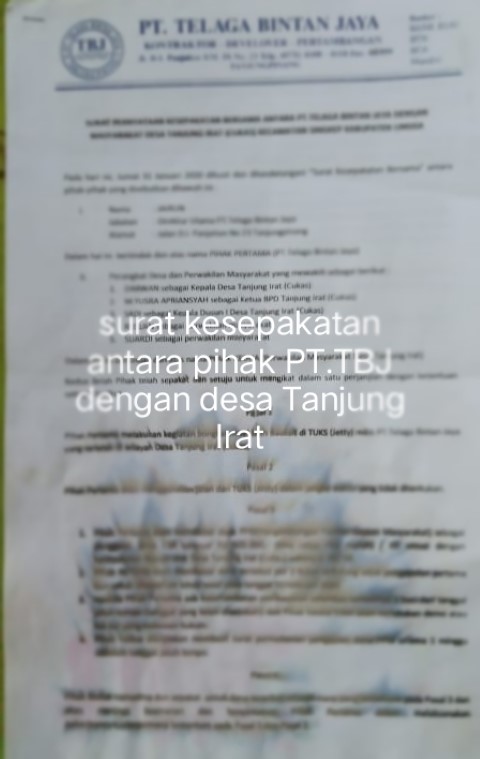 Masyarakat Desa Tanjung Irat Kecewa, Sudah 3 Bulan pihak PT TBJ Tidak Berikan Bantuan