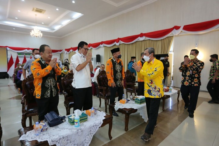 BUALBUAL.com - Gubernur Riau (Gubri) Syamsuar melakukan silaturahmi bersama paguyuban yang tergabung dalam Forum Pembauran Kebangsaan (FPK) Provinsi Riau di Gedung Daerah Balai Serindit, Kamis (16/12/21).