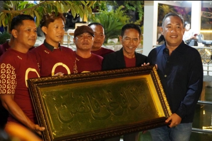 Dalam kesempatan ini ketua Ajoi Tubaba menerima dan menyerahkan cinderamata Kaligrafi untuk mantan Bupati Umar Ahmad.