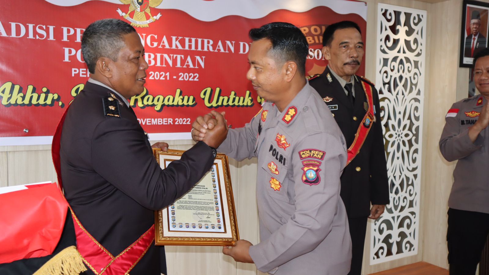 Kapolres Bintan AKBP Tidar Wulung Dahono mengucapkan selamat atas keberhasilan mengakhiri masa pengabdian sebagai anggota Polri dan mengakhiri masa pengabdian dengan baik serta merupakan anugerah dan dambaan bagi setiap personil Polri.