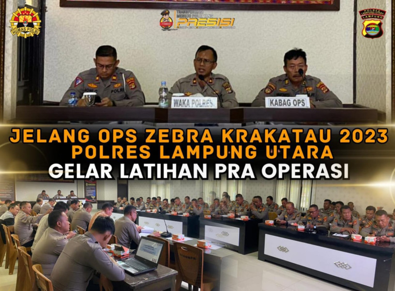 Kegiatan Lat Pra Ops tersebut dipimpin oleh Waka Polres Kompol Dwi Santosa, SH mewakili Kapolres Lampung Utara AKBP Teddy Rachesna, SH SIK MSi dan di hadiri Perwira serta Brigadir yang terlibat dalam Sprin Ops Zebra Krakatau 2023.