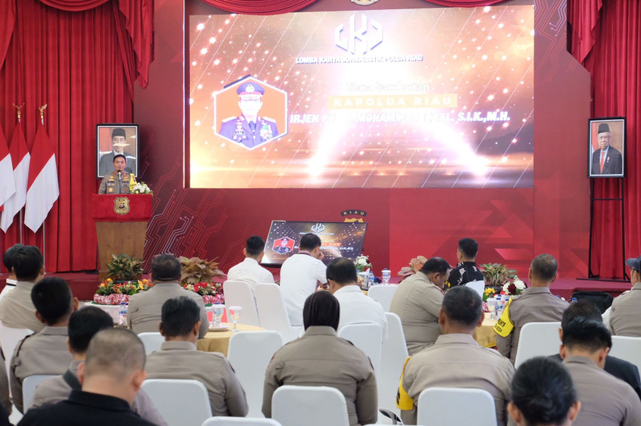 Kapolda Riau Irjen Pol Muhammad Iqbal melaunching perlombaan karya jurnalistik Rabu (15/11). Seluruh instansi yang berkaitan dengan Pemilu 2024 diundang saat pelaksanaan launching.