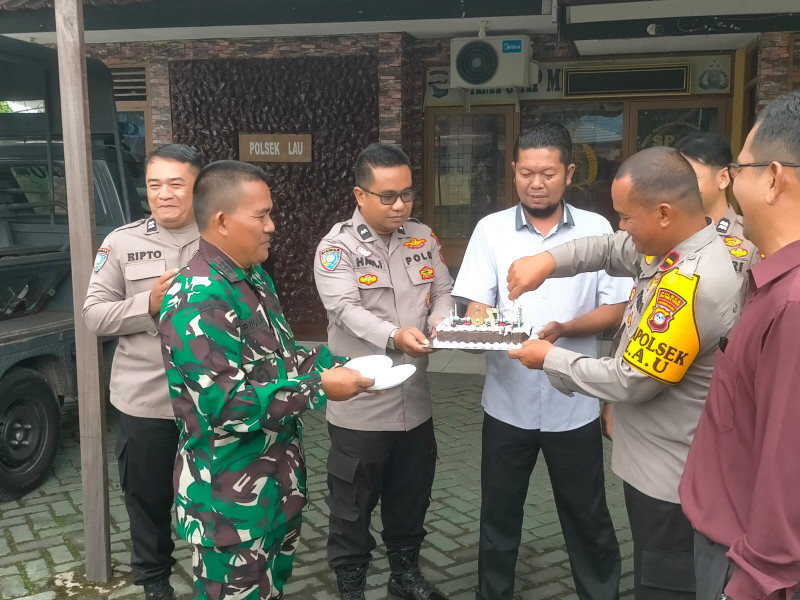 Plh Danramil 1002-01/Batang Alai Selatan Pelda A. Turidi bersama anggotanya memberikan kue tart kepada Polsek Batang Alai Selatan, sedangkan Danramil 1002-08/Labuan Amas Utara Kapten Inf Rudi Hartono bersama Camat Lau H. Muayyad, SAg dan anggotanya mendatangi langsung Polsek Labuan Amas Utara.