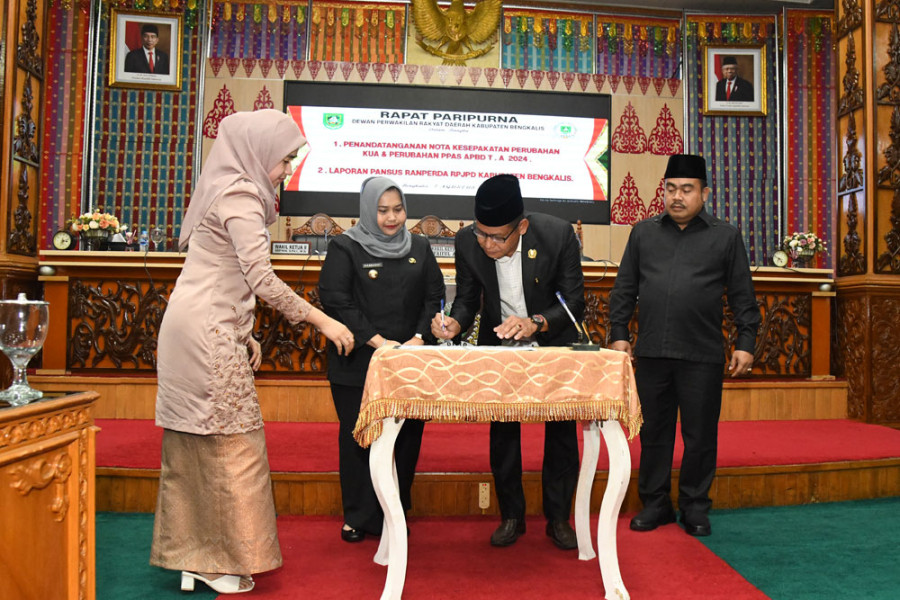 Penandatanganan nota kesepakatan itu digelar dalam sidang paripurna DPRD Bengkalis yang dipimpin Wakil Ketua II Sofyan, didampingi Wakil Ketua III Syaiful Ardi di Gedung DPRD Bengkalis, Rabu 7 Agustus 2024.