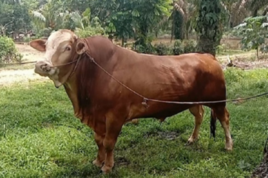 Sapi pertama merupakan milik Teguh Suprianto, warga Dusun Tegal Sari RT 013 RW 004, Desa Pasir Intan, Kecamatan Bangun Purba. Sapi jenis Simental ini memiliki bobot mencapai 950 kilogram dan dinilai sangat memenuhi kriteria yang ditetapkan. Nantinya, sapi ini akan dikurbankan untuk tingkat Provinsi Riau.