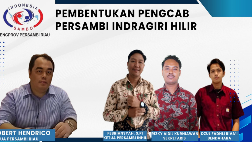 BUALBUAL.com - Pengurus Provinsi (Pengprov) Persatuan Sambo Indonesia (Persambi) Riau secara resmi menunjuk Febriyansyah, S.Pi, Rizky Aidil, dan Dzul Fadhli Rivai sebagai pengurus Pengcab Persambi Indragiri Hilir periode 2025–2029. Penunjukan ini ditandai dengan diterbitkannya surat mandat oleh Pengprov Persambi Riau kepada ketiganya untuk segera membentuk susunan kepengurusan Pengcab Persambi Indragiri Hilir.