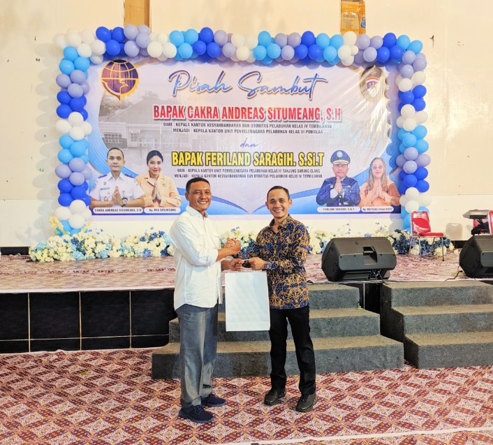 Dalam acara tersebut, Cakra Andreas Situmeang, S.H., yang sebelumnya menjabat sebagai Kepala KSOP Kelas IV Tembilahan, resmi berpindah tugas sebagai Kepala Kantor Unit Penyelenggara Pelabuhan (UPP) Kelas III Pomala. Posisinya kini digantikan oleh Feriland Saragih, S.Si.T., yang sebelumnya menjabat sebagai Kepala Kantor UPP Kelas III Tanjung Sarang Elang.