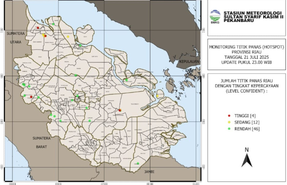 BUALBUAL.com - Jumlah titik panas (hotspot) di Provinsi Riau mengalami penurunan dan kini tersisa 62 titik. Informasi ini berdasarkan data pembaruan terakhir yang dirilis oleh BMKG pada Senin (22/7) pukul 23.00 WIB.