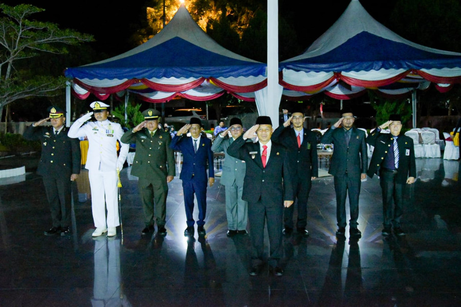 Apel diterangi cahaya obor di kanan dan kiri, tepat pukul 00.00 WIB, selaku inspektur upacara Wabup H Bagus Santoso membaca naskah apel kehormatan dan renungan suci tersebut.