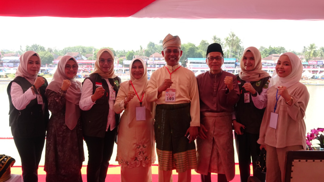 BUALBUAL.com - Bupati Indragiri Hilir (Inhil) Herman, didampingi Ketua Tim Penggerak PKK Katerina Susanti, Ketua Ikatan Keluarga Kuantan Singingi Inhil sekaligus Asisten Administrasi Umum Fajar Husin dan pejabat terkait, ikut meriahkan Peresmian Festival Pacu Jalur Tradisional 2025, di Tepian Narosa, Kuantan Singingi.