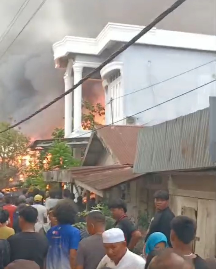“Api merambat sangat cepat karena sebagian besar bangunan terbuat dari kayu. Saat ini api sudah terkendali, namun pendinginan masih dilakukan di lapangan,” ujarnya.
