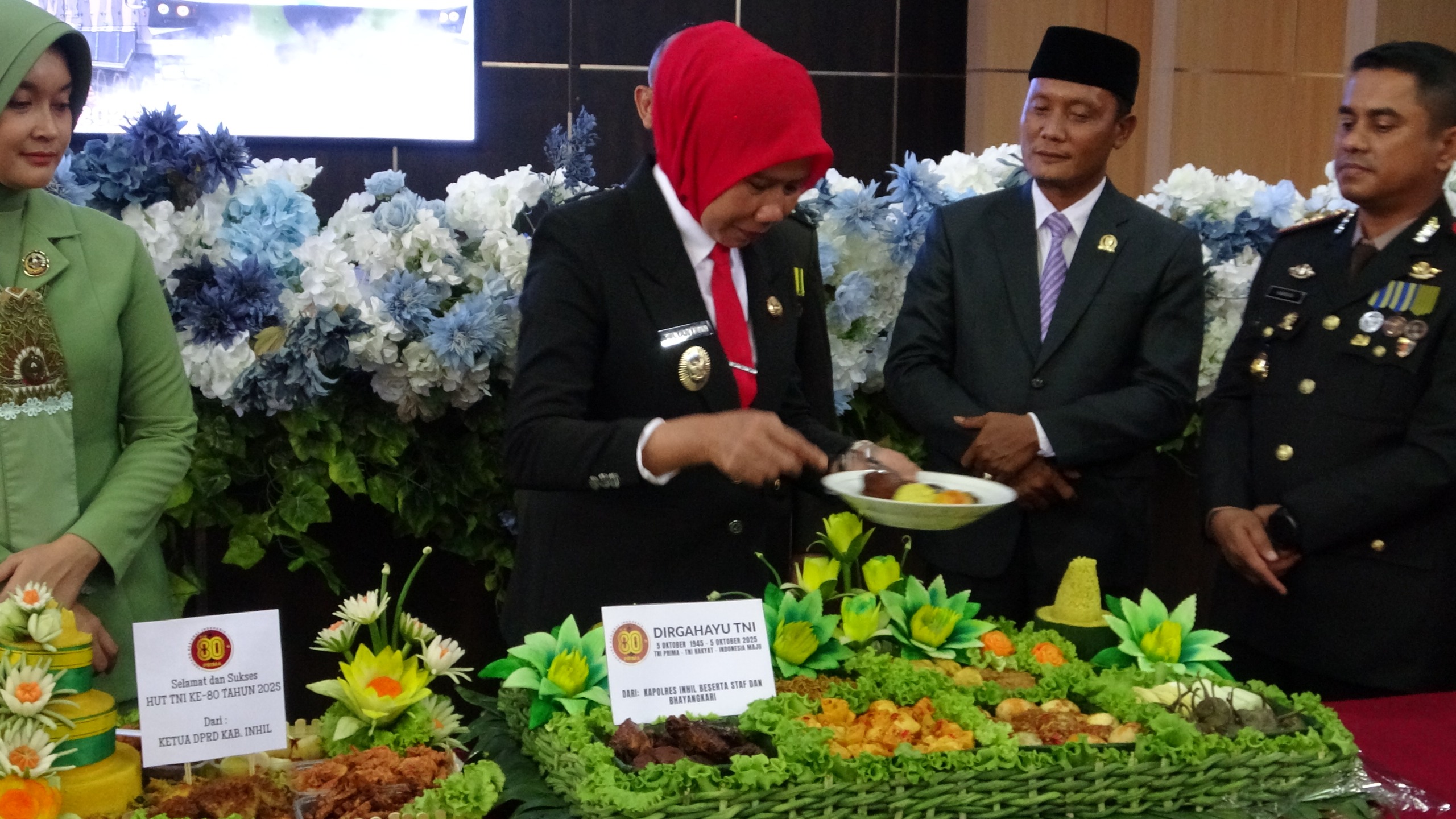 “Atas nama Pemerintah Kabupaten Indragiri Hilir, saya mengucapkan selamat ulang tahun ke-80 kepada TNI. Semoga di usianya yang semakin matang, TNI semakin kuat, modern, dan maju,” ujar Wabup Yuliantini.
