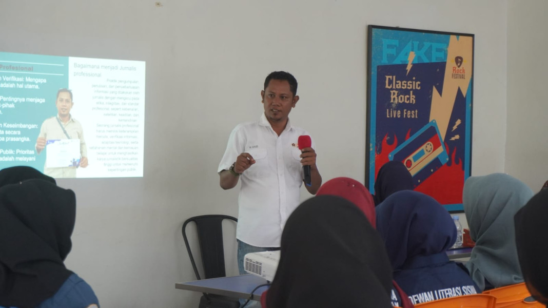 Suasana kegiatan berlangsung hangat dan interaktif. Para peserta tidak hanya menyimak, tetapi juga aktif bertanya dan berdiskusi. Bahkan, di akhir sesi, masing-masing peserta diberi kesempatan untuk mempraktikkan penulisan berita secara langsung, sebuah latihan sederhana namun bermakna dalam menumbuhkan kemampuan berpikir kritis dan menulis informatif.