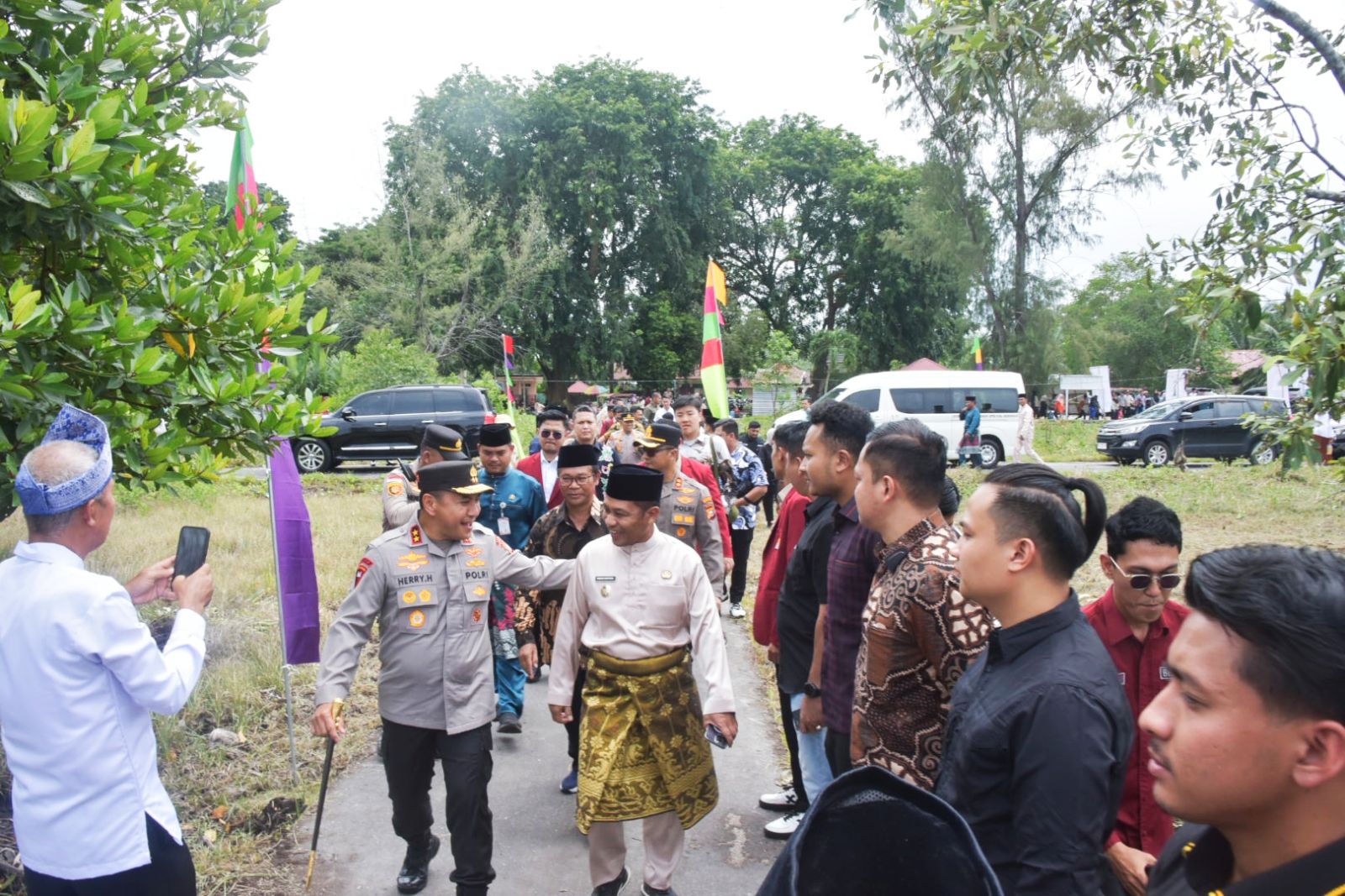 Tiba di Pantai Perapat Tunggal, Kapolda dan Wakil Bupati bersama rombongan diarak dengan gemuruh kompang serta disambut tarian persembahan, sebagai tanda penghormatan kepada tamu di Negeri Melayu.